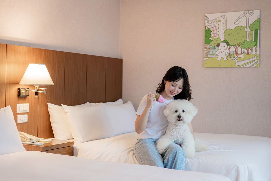 住房部分,今年暑假全國大飯店啟用寵物友善樓層,開放犬貓牽繩落地、自由上床,以專屬樓層規劃與完善毛孩備品服務亮點持續吸引毛孩家庭入住。飯店看好市場需求,上月起再啟用多間大坪數房型,可接待三隻大型犬及四至五位家庭成員同住,客房備有迎賓禮、1-2組寵物床墊與食器,並透過樓層區隔與備品分流維持住宿品質。春節期間訂房詢問明顯增加,加上草悟道週邊寵物友善商場與餐廳環繞,形成一站式寵物出遊生活圈,進一步帶動毛孩家庭住宿需求。