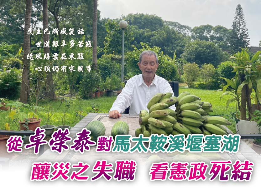 馬太鞍溪的潰決,既是天災,也是人禍。卓榮泰的怠惰固然令人憤慨,但更深層的病灶在於憲政死結:總統有權無責,院長有責無權,國會有決議,卻無法律強制效力。在這樣的憲政結構下,災害治理只能停留在新聞稿與儀式,人民卻只能一次次無辜的承受災害的損失!