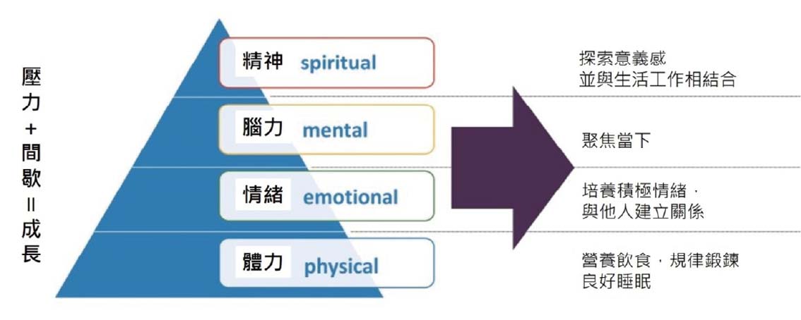 我有一位推動共讀有成的好友,也是「共讀的力量」作者林揚程,也都是『閱讀修心,運動修身』的典範。有一次參加林揚程的新書發表會『你不是懶,而是能量低-善用精力管理四大維度,打造平衡人生』。精力管理的4個維度,包括體能維度、情緒維度、思維維度、精神維度。