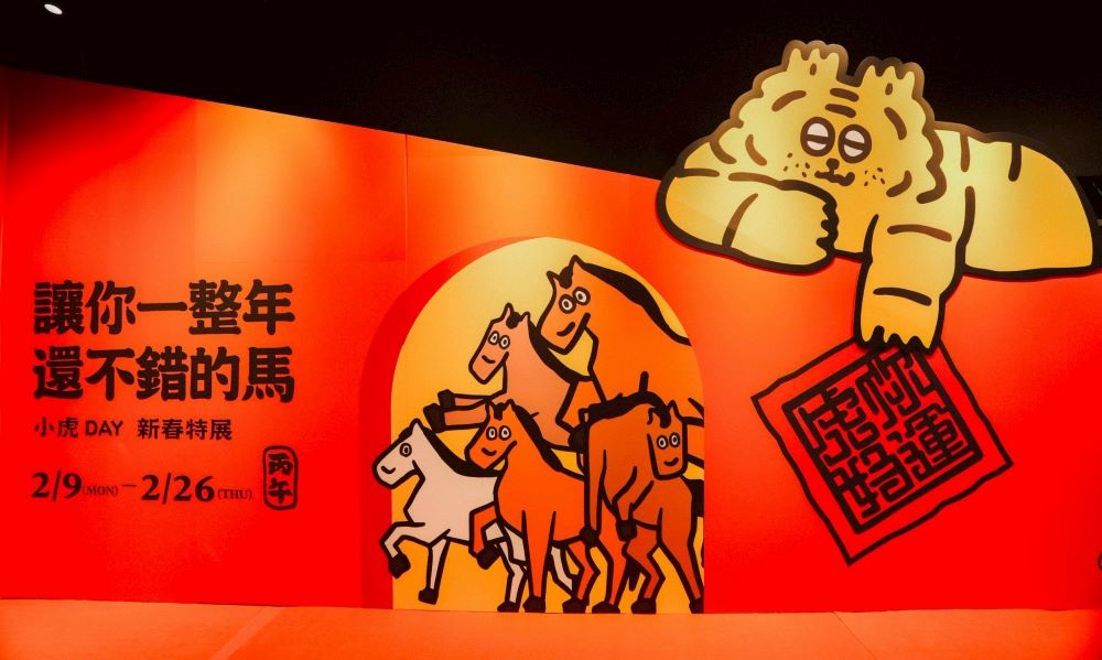《讓你一整年還不錯的馬》展覽時間從2月9日至26日免費參觀,讓大家透過祈福裝置開啟嶄新的馬年篇章。這次展覽以「除穢、招財、納福、團圓」四個新年祈福情境主題,放入小虎day創作者ericoco趣味鮮明的小虎角色,將傳統的新年祈願符號「空間化」,讓祝福不再只是一句話或平面圖騰,而成為可步入的場景敘事。