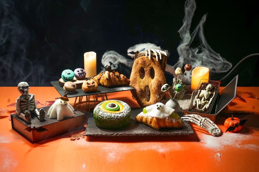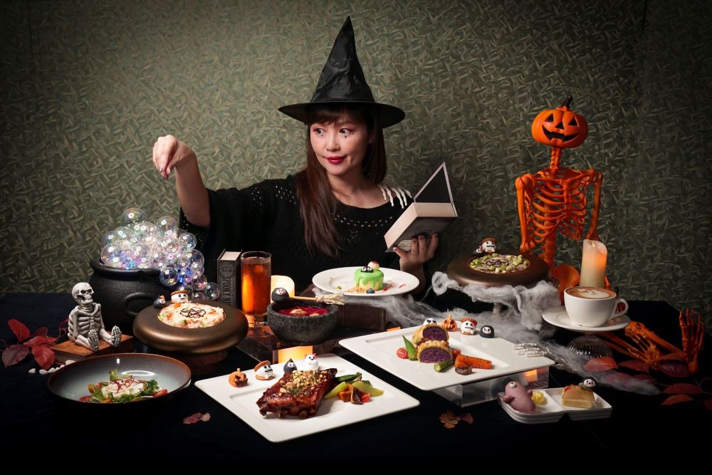 台中福華表示,館內自10月起全館換上萬聖氛圍,館內各餐廳皆推出萬聖節限定料理。「覓舍」全日餐廳推出《魔法餐桌》萬聖節單人套餐(NT$1,031+10%),以「女巫的骷顱湯」為開場,搭配「白魔法-奶油鮭魚燉飯」與「黑魔法-黑松露蔬菜燉飯」展開葷素對決,主菜「萬聖派對-南卡風味豬肋排」可加價升級100oz紐約客牛排。另有「藍色咒術」、「女巫秘釀」等主題特調飲品,為饕客帶來微醺魔法時刻。中餐廳「江南村」與「海華樓」則以節慶元素設計「暗夜傑克南瓜包」(NT$139+10%/2入),外型可愛、口味香濃。「豪吧」也同步推出「水晶骷仔」提拉米蘇、「幽靈飄飄」麻糬香橙乳酪塔、「魅影」泰式打拋豬軟法,以及萬聖造型馬卡龍與棒棒糖蛋糕等創意甜點。此外,飯店更加碼推出「搞鬼有禮」活動,凡著萬聖主題裝扮至館內用餐,即可獲贈指定萬聖節點心或飲品,鼓勵民眾變裝同樂。